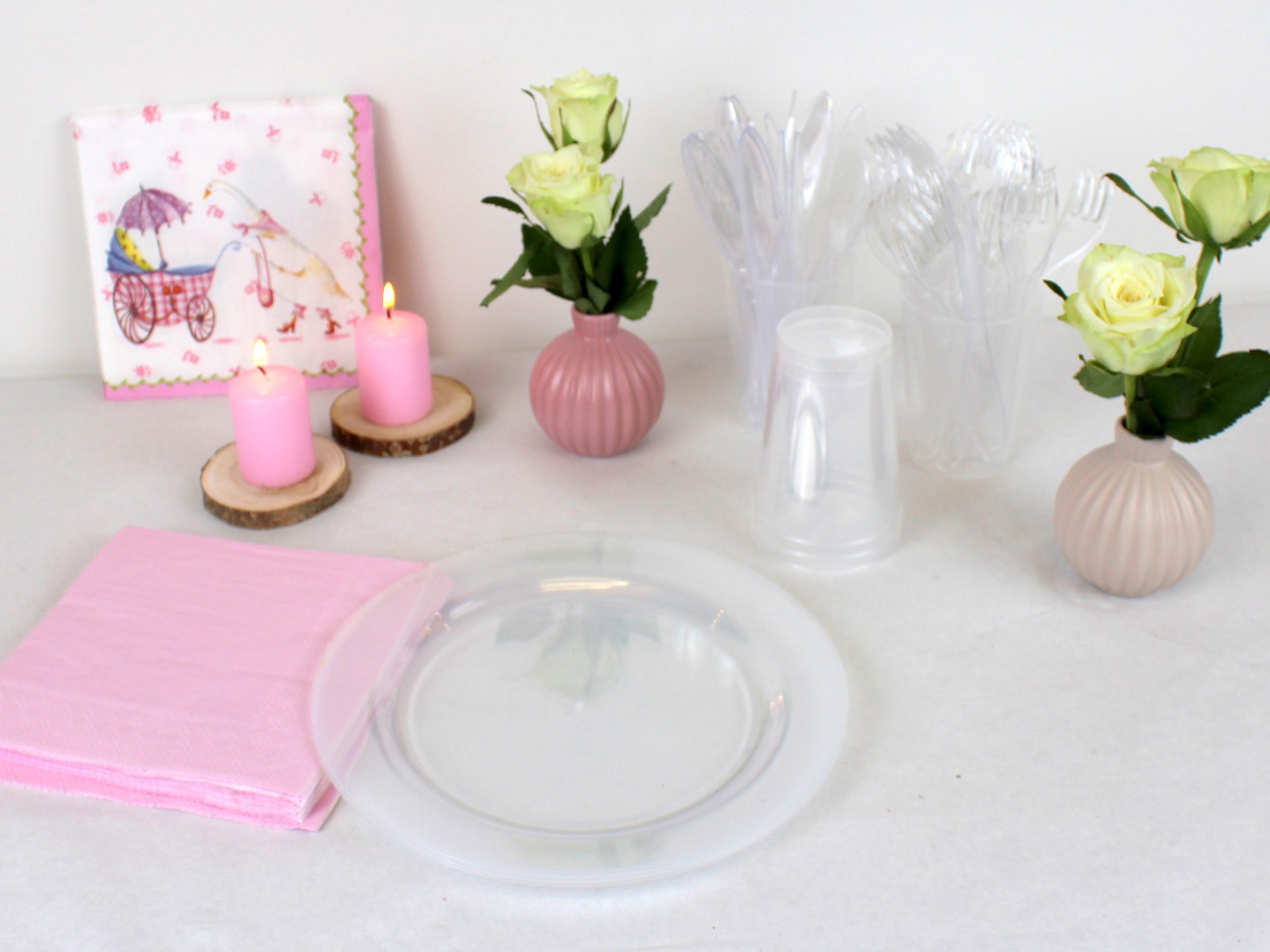 - Pink stearinlys og servietter – pink og lyserøde farver symboliserer håb og romantik.