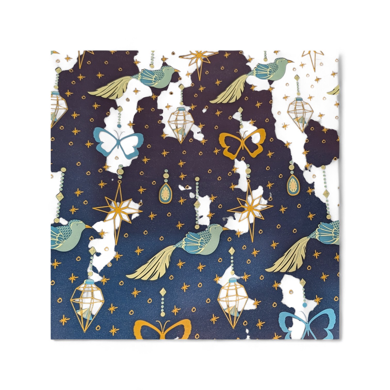 Forskellige bundfarver i guld/sorte/hvide/blå med print med klassiske julemønstre.