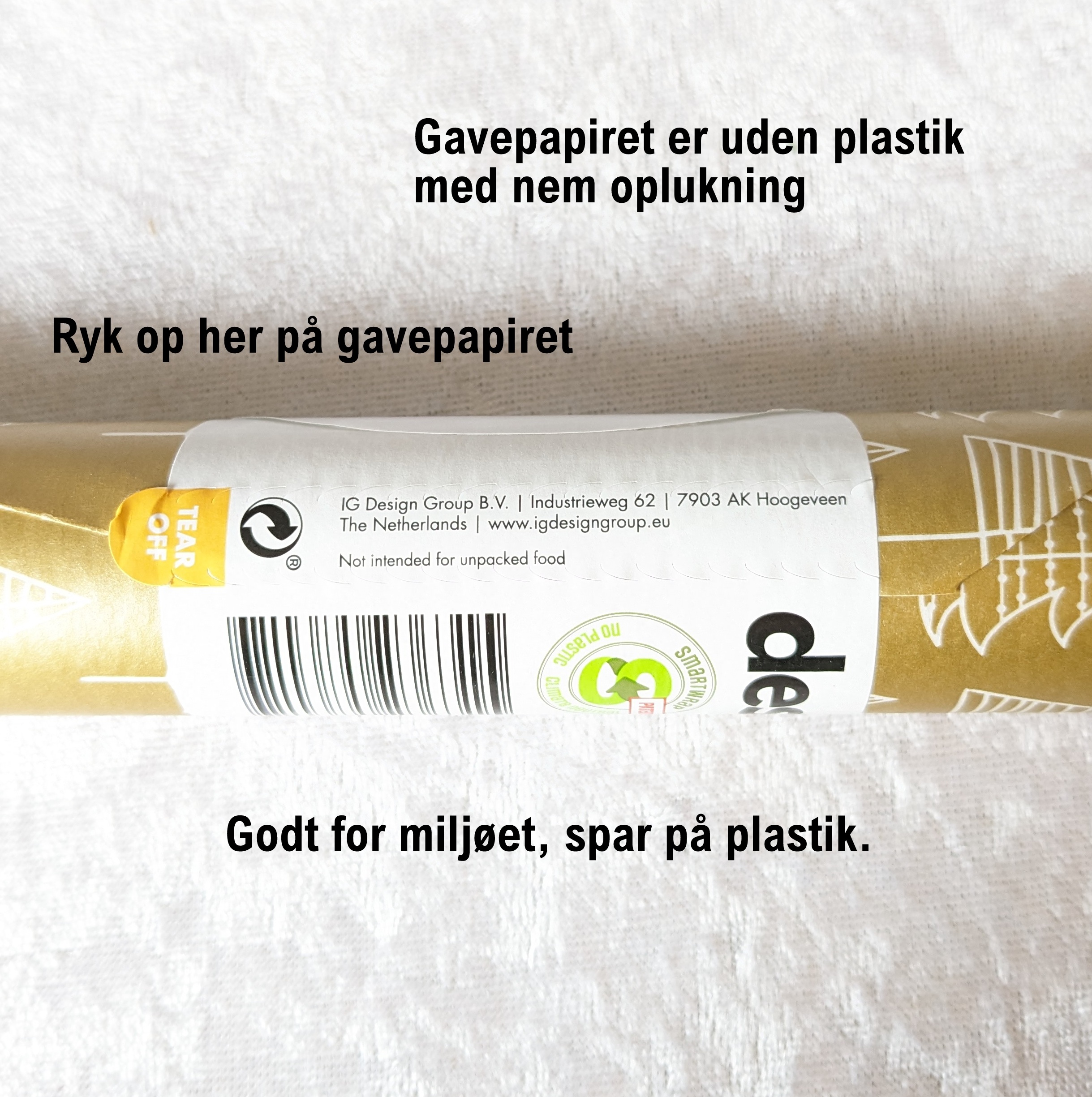 Julegavepapiret er fremstillet af genbrugspapir og derfor skånsom for miljøet. FSC mærket. Rullerne er uden plastik udenpå for at skåne miljøet og er med et papirbånd rundt om midt på rullen, der nemt åbnes uden at beskadige gavepapiret. Se på flere billeder.