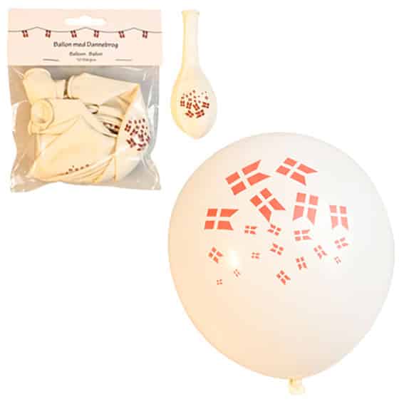 Balloner til fest og fødselsdage med flotte Dannebrogsflag. De er også egnede til at fylde helium i, så de kan holde sig svævende.