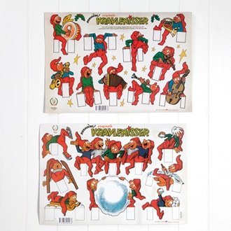 Det ene ark er med de kendte orkester Bramming nisser, og det andet ark er med Bramming nisser i sne og på ski.