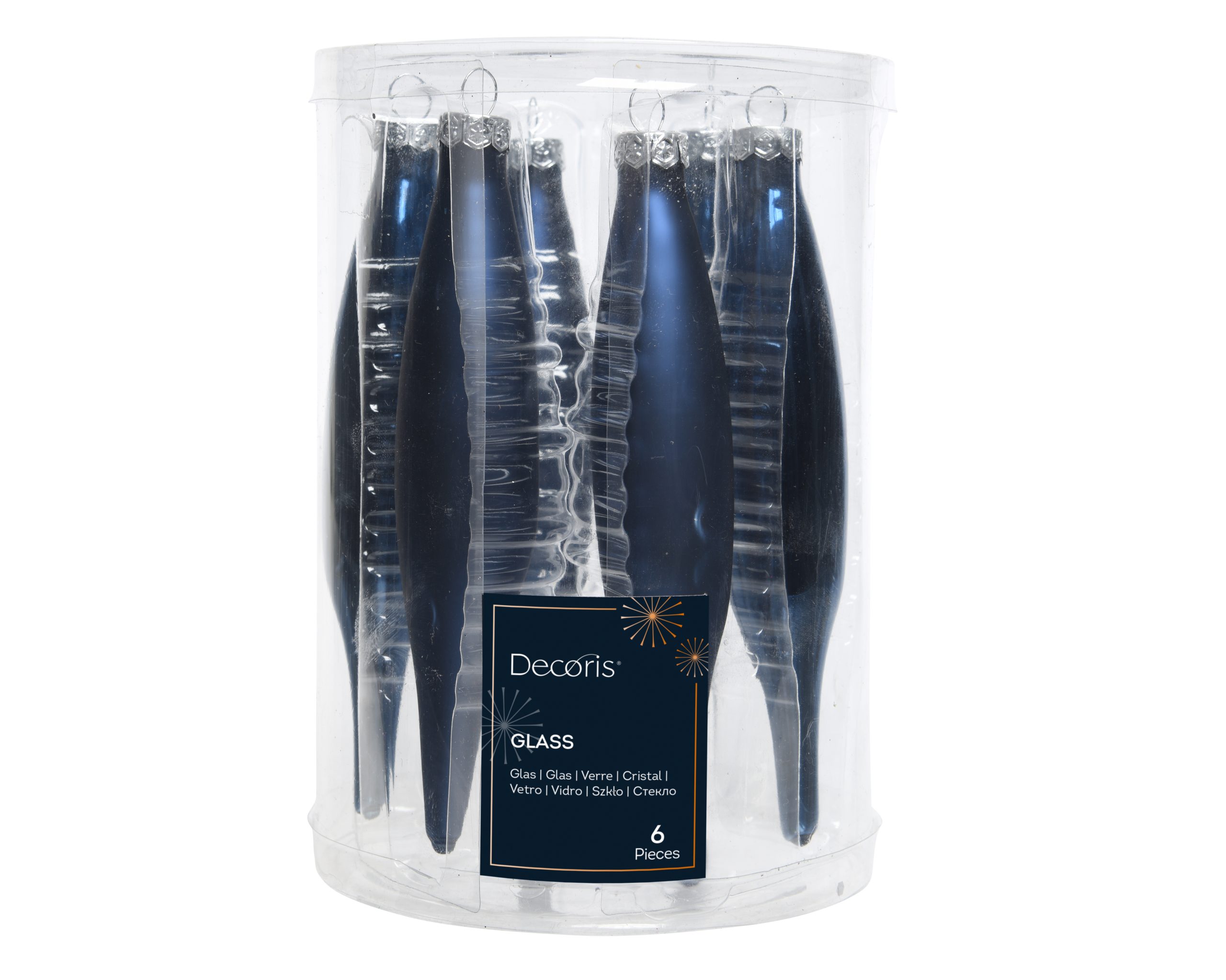 glas istapper i blå i mix af mat og blank 6 styk på 15 centimeter