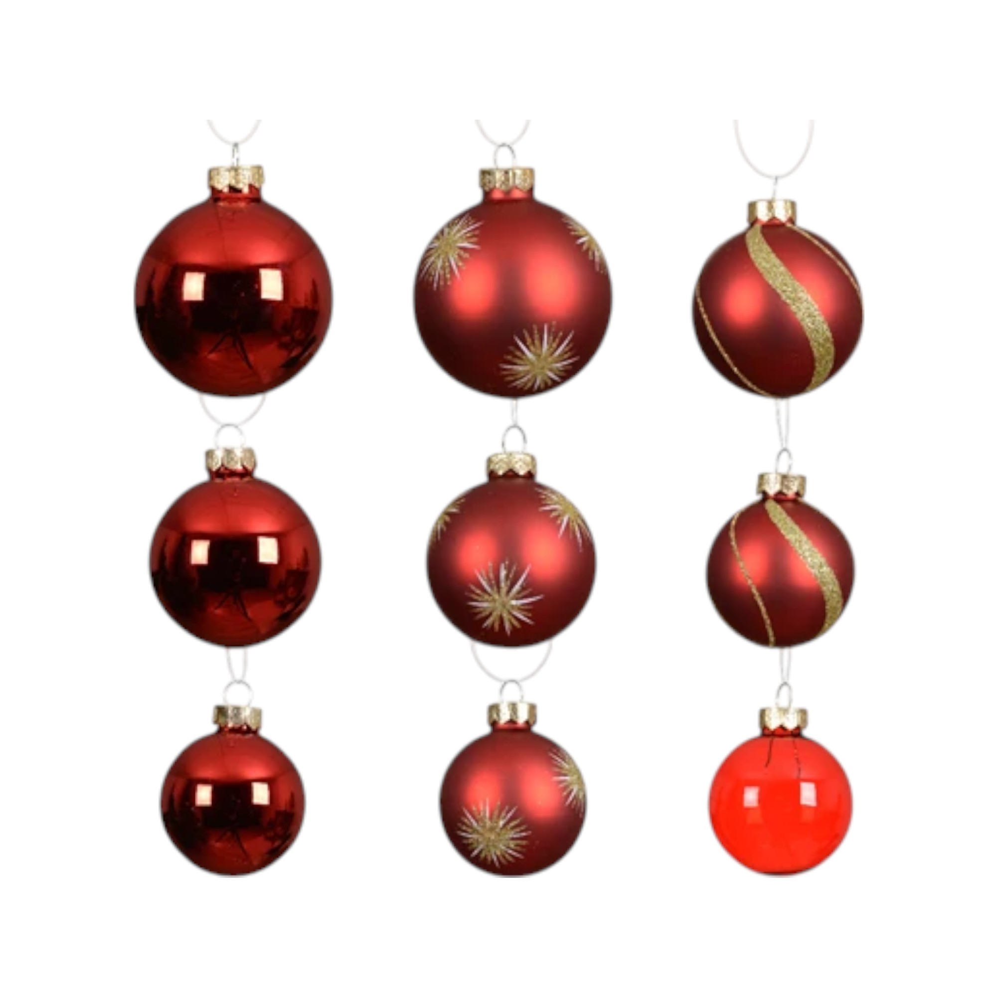 Julekugler glas, RØD mix boks Ø 5 – 7 cm. (20 stk.)