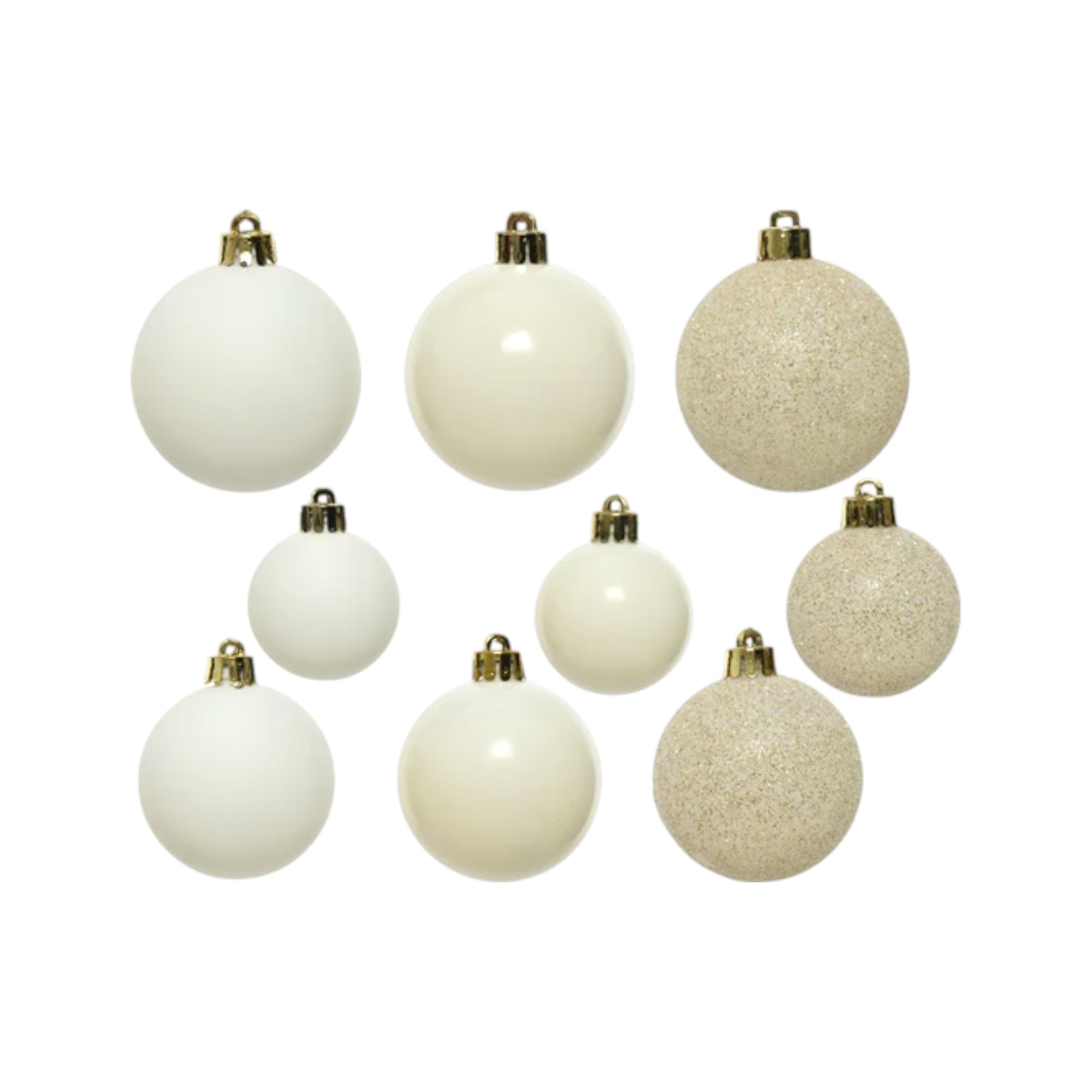 Du kan købe sortimenter i forskellige farver, hvor overfladerne på julekuglerne er forskellige. Der kan være julekugler der ligner golfbolde, julekugler med glimmer, julekugler med hulmønster og matte og blanke julekugler. Du kan også købe æsker, hvor alle julekuglerne i æsken er ens. Vi har store julekugler i plastik med diameter helt op til 25 cm.
