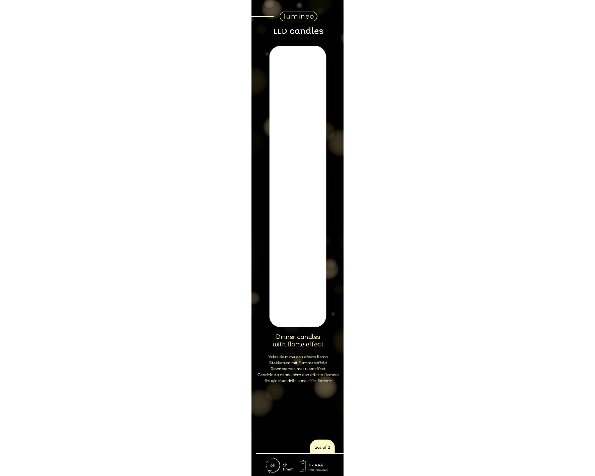 LED stagelys i HVID med flad top, diameter 2,2 cm., højde 24,5 cm. (2 stk.)