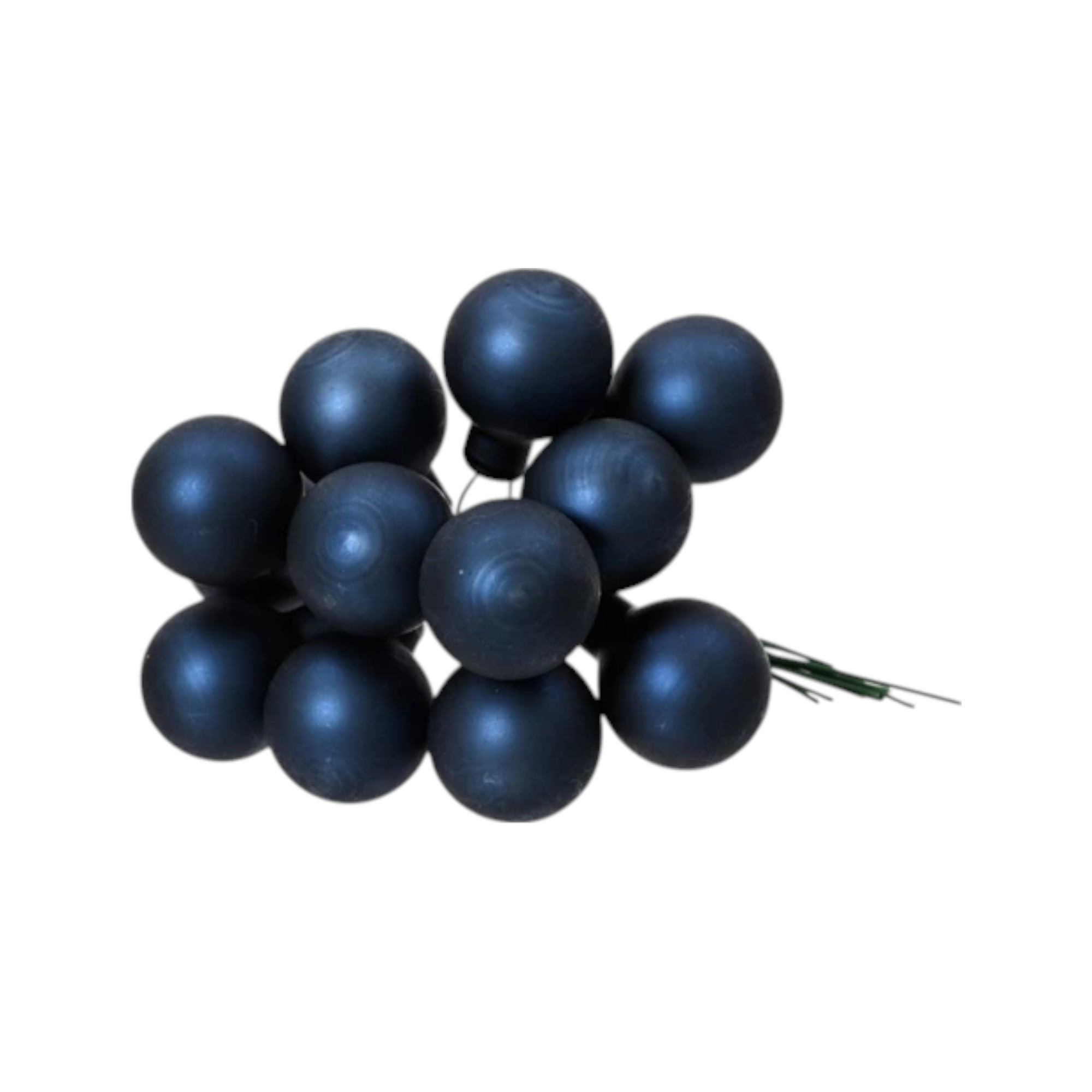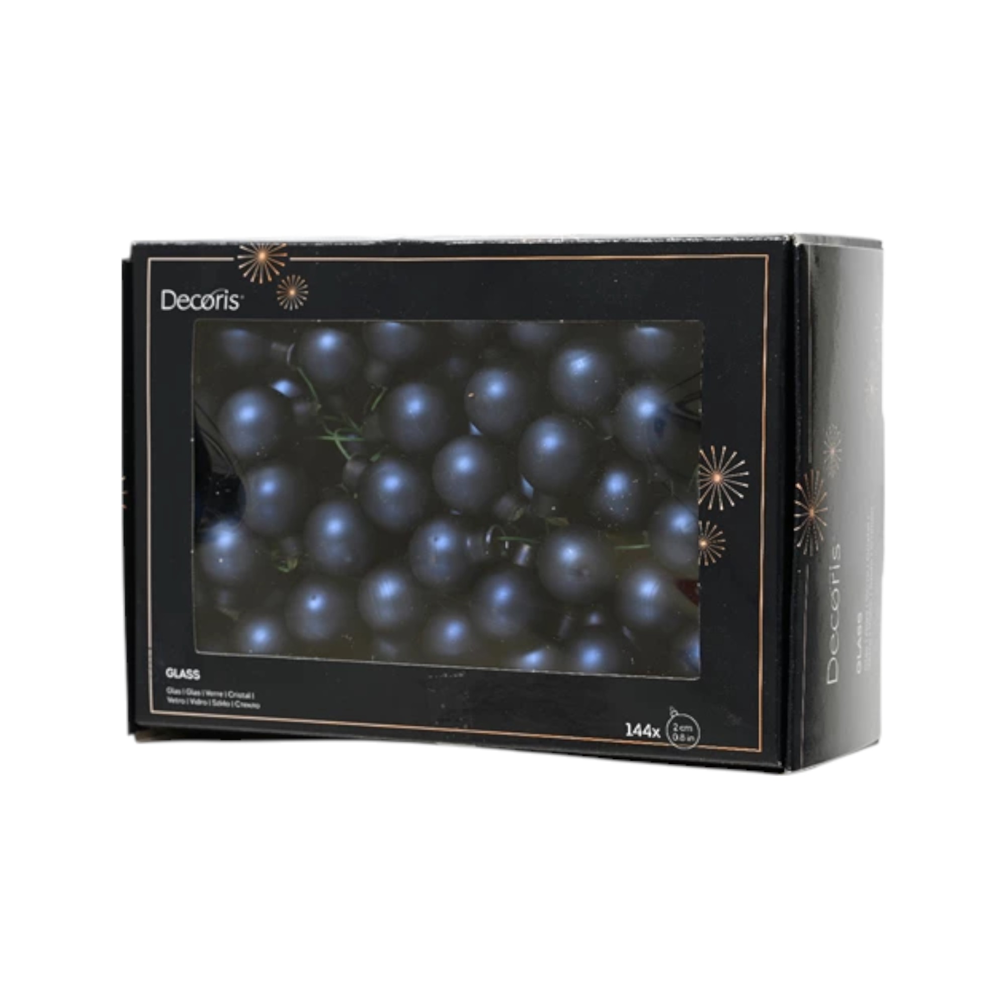 Mini glas julekugler på wire, BLÅ mat Ø 2 cm. (144 stk.)