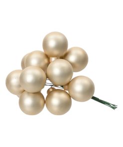 Små glaskugler er meget dekorative i din juledekoration. De er meget nemme at bruge, fordi alle de små kugler hver især sidder på et stykke ståltråd, som er nem at stikke i blomsterskum eller ler i din dekoration. Uanset om du laver din juledekoration på et fad eller i en krukke, er de julekugler på ståltråd meget anvendelige. Du kan købe julekugler på ståltråd i mange forskellige farver hos os og med både blanke eller matte overflader.