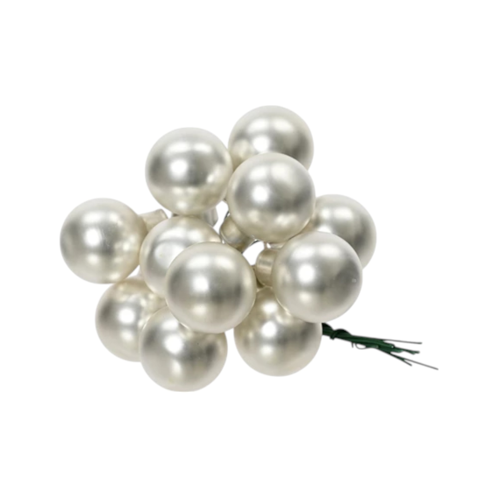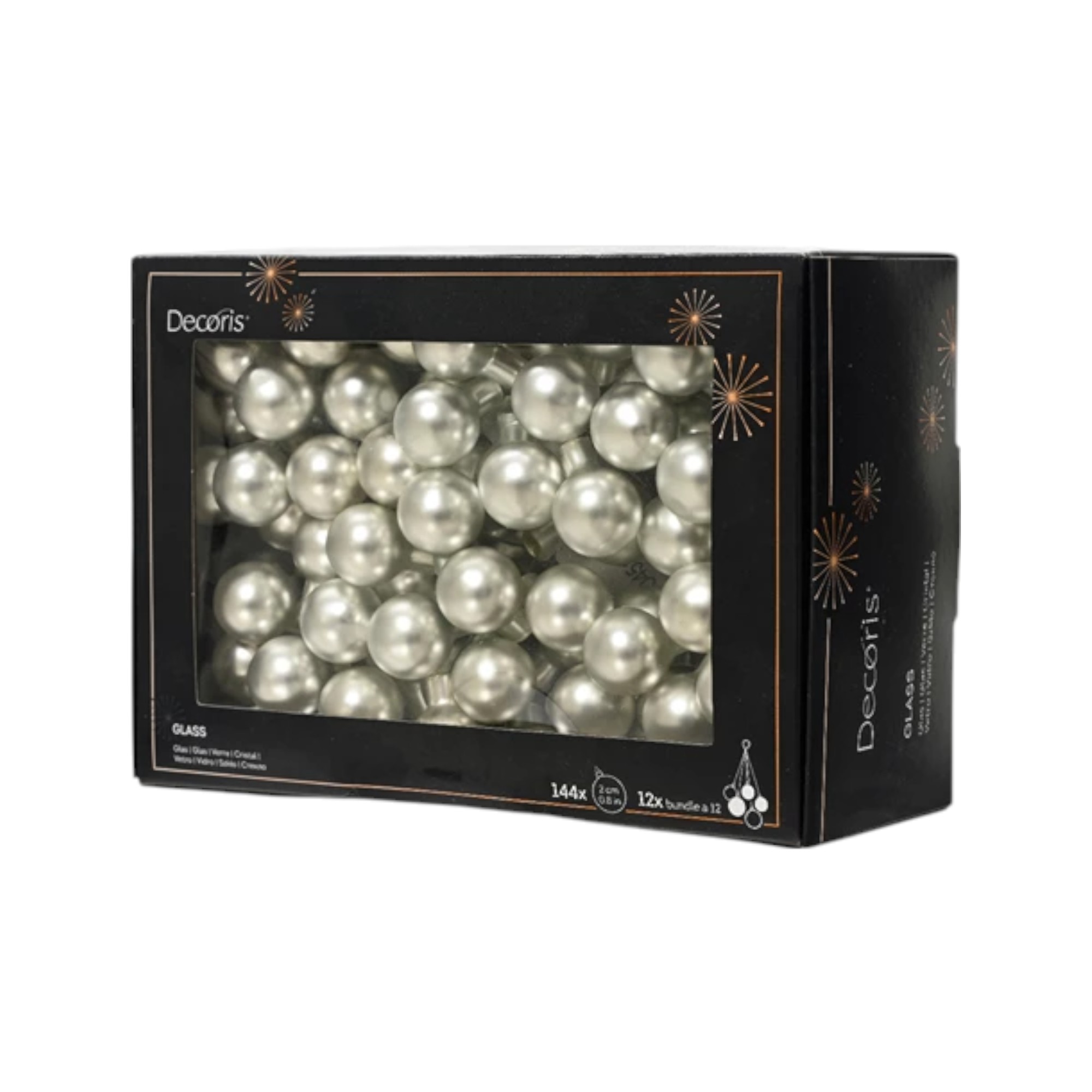 Mini glas julekugler på wire, SØLV matte Ø 2 cm. (144 stk.)