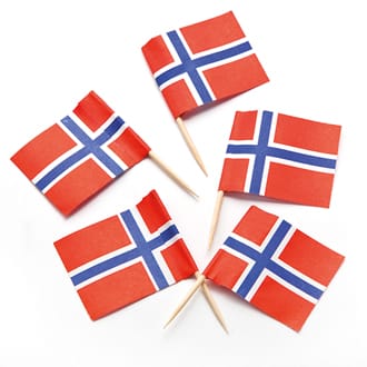 Norske flag på pind. 50 stk. 4 cm. til fester og fødselsdage