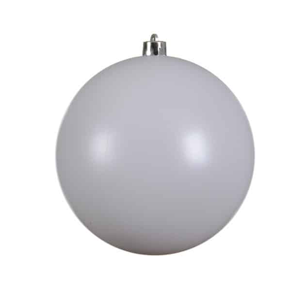 Denne plastik julekugle er 14 cm. i diameter. Julekuglen har en mat HVID overflade, næsten som en snebold.