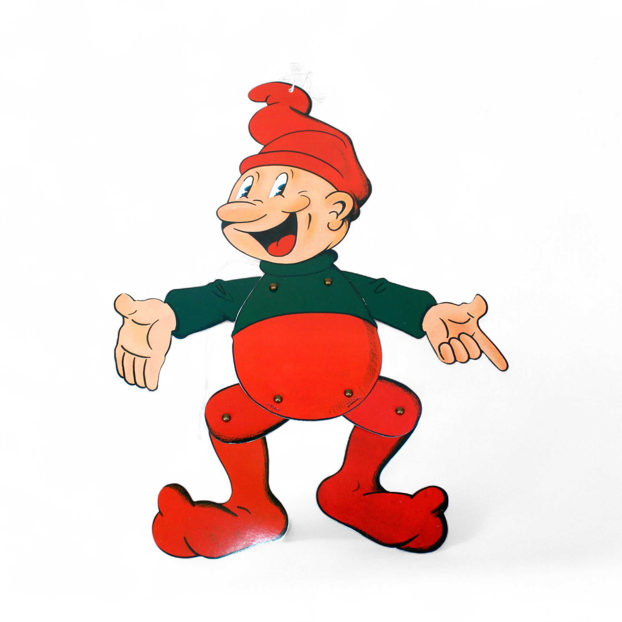 Bramming nisse sprællemand af karton fra Pobra, grøn bluse. 40 cm.