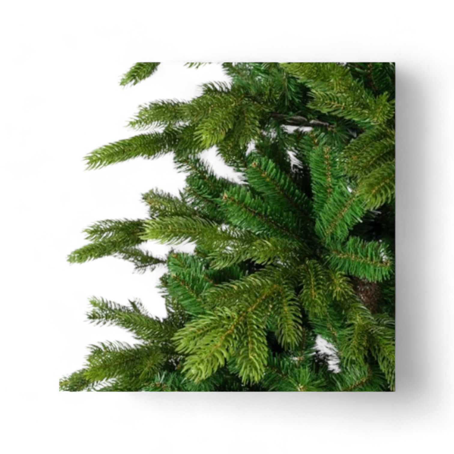 Kunstig naturtro grønt juletræ på metalfod. Flot højt og tæt juletræ til indendørs brug.