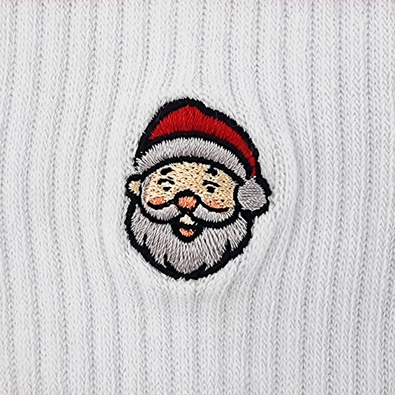 Bløde hvide tennisstrømper med en julemand og stribet rib. Strømperne har en god pasform og er af høj kvalitet. Perfekt kalender- eller adventsgave til voksne.