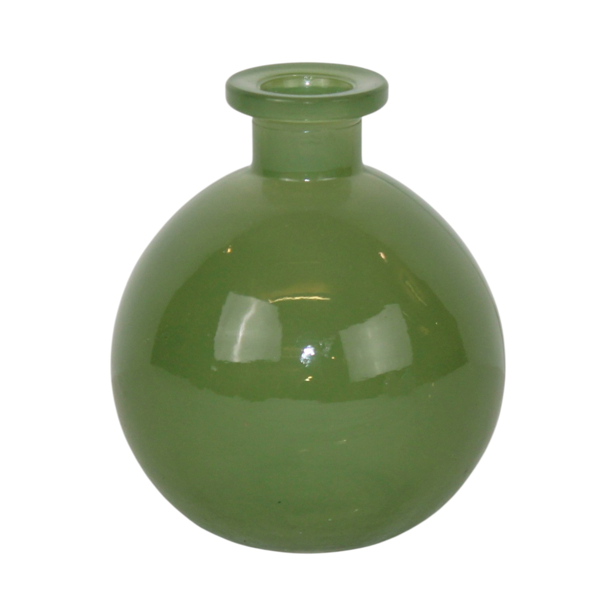 Vase, rund GRØN transparant glas, 10 cm